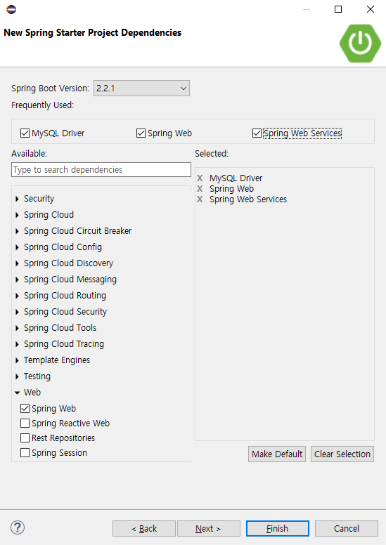 의존성은 간단하게 MySQL, Web과 같은 라이브러리만 주입해 보도록 하겠습니다.