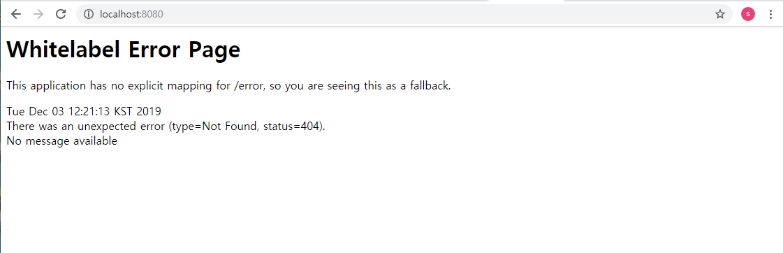 Spring은 기본적으로 서버에서 실행된다고 가정하고 실행되기 때문에 실행 시 정의된 port number에 따라 local환경의 URL을 배정받습니다.(application.properties파일에서 수정 가능합니다.)
