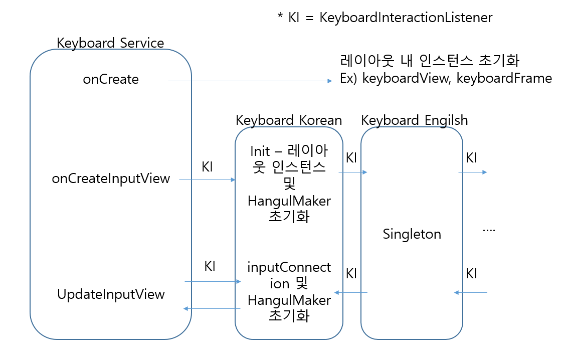 *(수정)성능 개선을 위하여 onCreateInputView에서 init한 KeyboardKorean객체를 재활용할 수 있도록 개선하였습니다(2019.11.08)