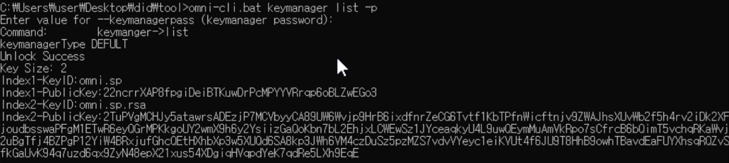 omni-cli.bat did2 addkey -i omni.sp.rsa --keymethod 4 -f sp.did -p