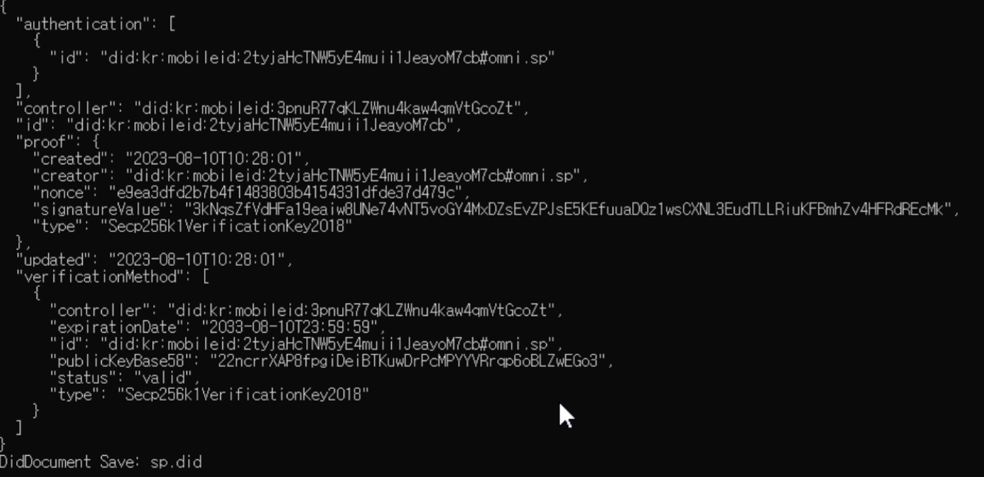 omni-cli.bat did2 create -i omni.sp --keymethod 3 -s sp.did --controller did:kr:mobileid:3pnuR77qKLZWnu4kaw4qmVtGcoZt -p