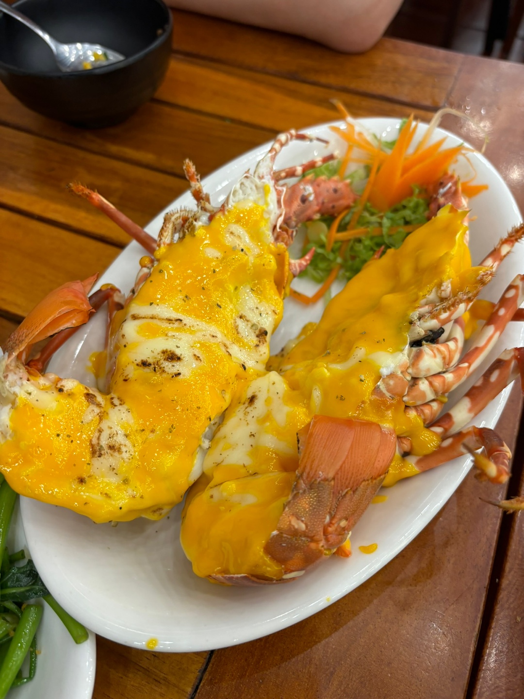 ⭕️ 저녁식사(JJ 씨푸드) : 복귀한 뒤 미리 찾아놓았던 JJ씨푸드를 방문하였습니다. Vin Wonders 패키지에서 돌아갈 곳까지 데려다줍니다.(미리 카톡 추가해둔 뒤 시간을 정해놓고 케이블카 탑승장소에서 만나기로 함). 이곳도 완전 한국인들로 점령되어있는 식당이었고 저희는 모닝글로리, 계란볶음밥(맛있어서 하나 더먹음), 블랙타이거 새우구이, 오징어튀김(히트), 모짜렐라 치즈 크레이지 피쉬 이렇게 먹었습니다. 전반적으로 만족스러운 식당이었고, 종업원들도 엄청 친절했습니다 ㅎㅎ